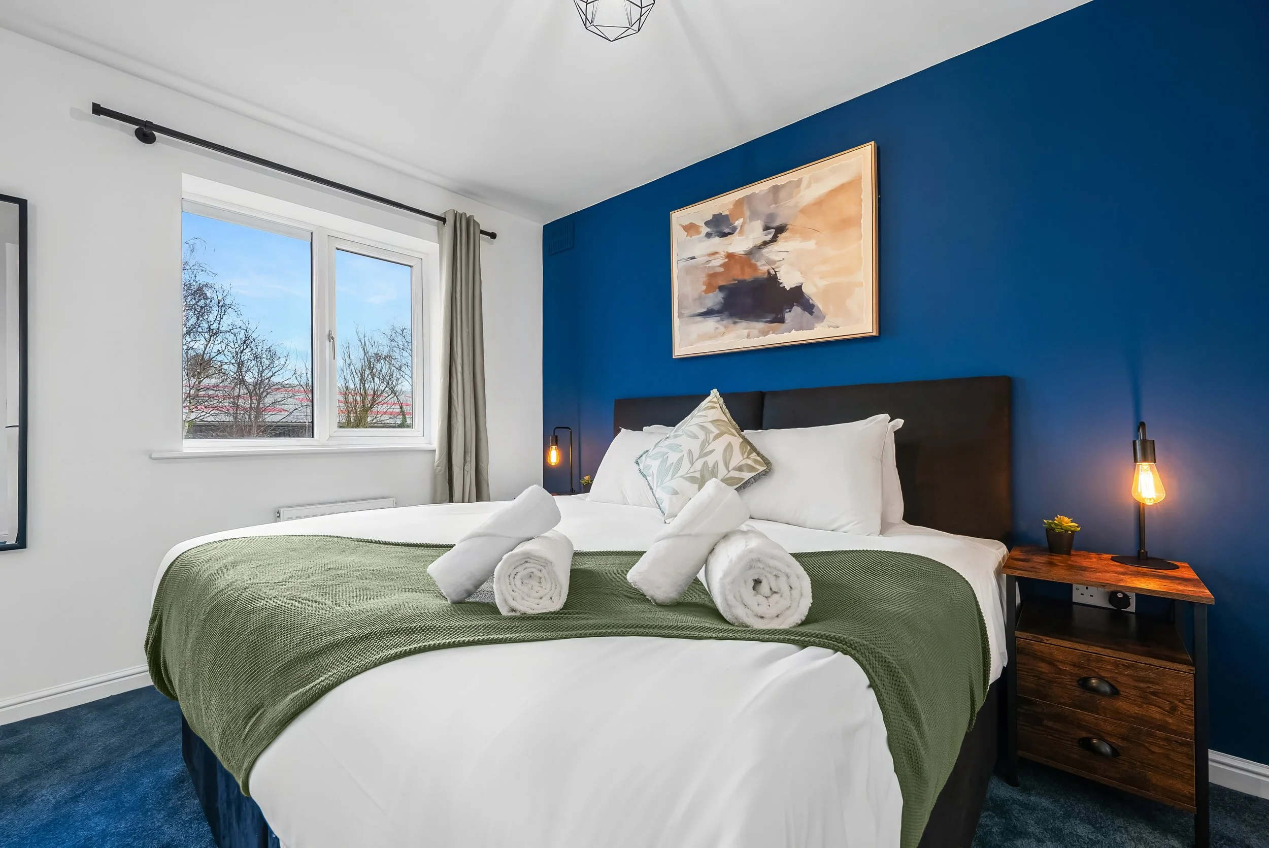 Designed for longer stays, with off-road parking, fast Wi-Fi, comfortable living space, and quality beds for proper rest.